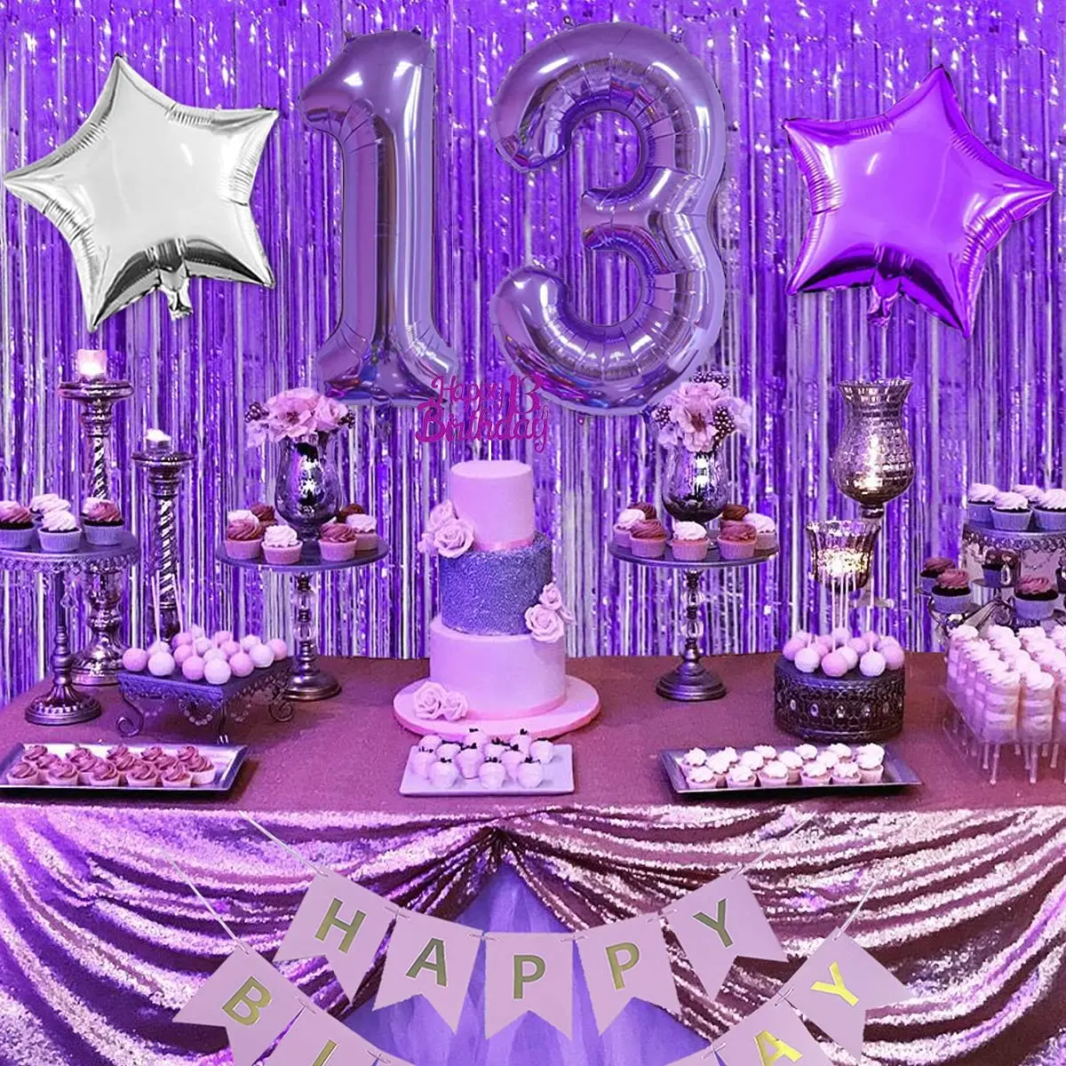 Source: www.aliexpress.com Purple 13Th Birthday Party Decorations For Girls 13 Year Old With Happy 13Th Birthday Cake Topper Purple Number 13 Foil Balloon|Ballons & Accessories| - Aliexpress