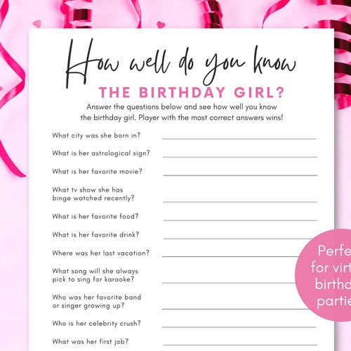 Source: www.etsy.com How Well Do You Know The Birthday Girl Game Adult Birthday - Etsy India