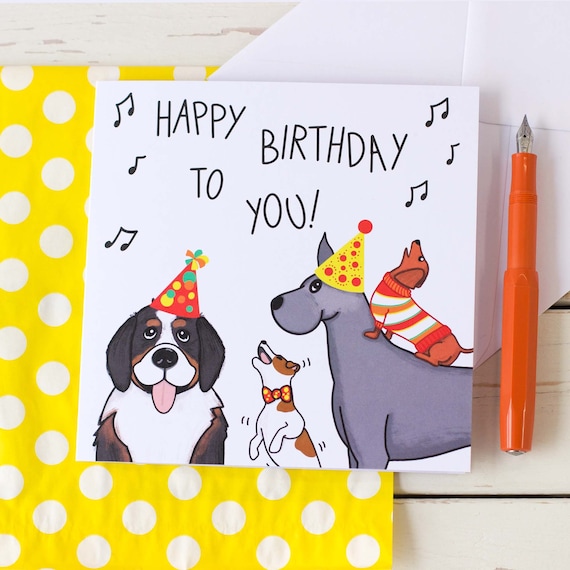 Source: www.etsy.com Cute Large And Small Dogs Singing Happy Birthday. Illustrated - Etsy