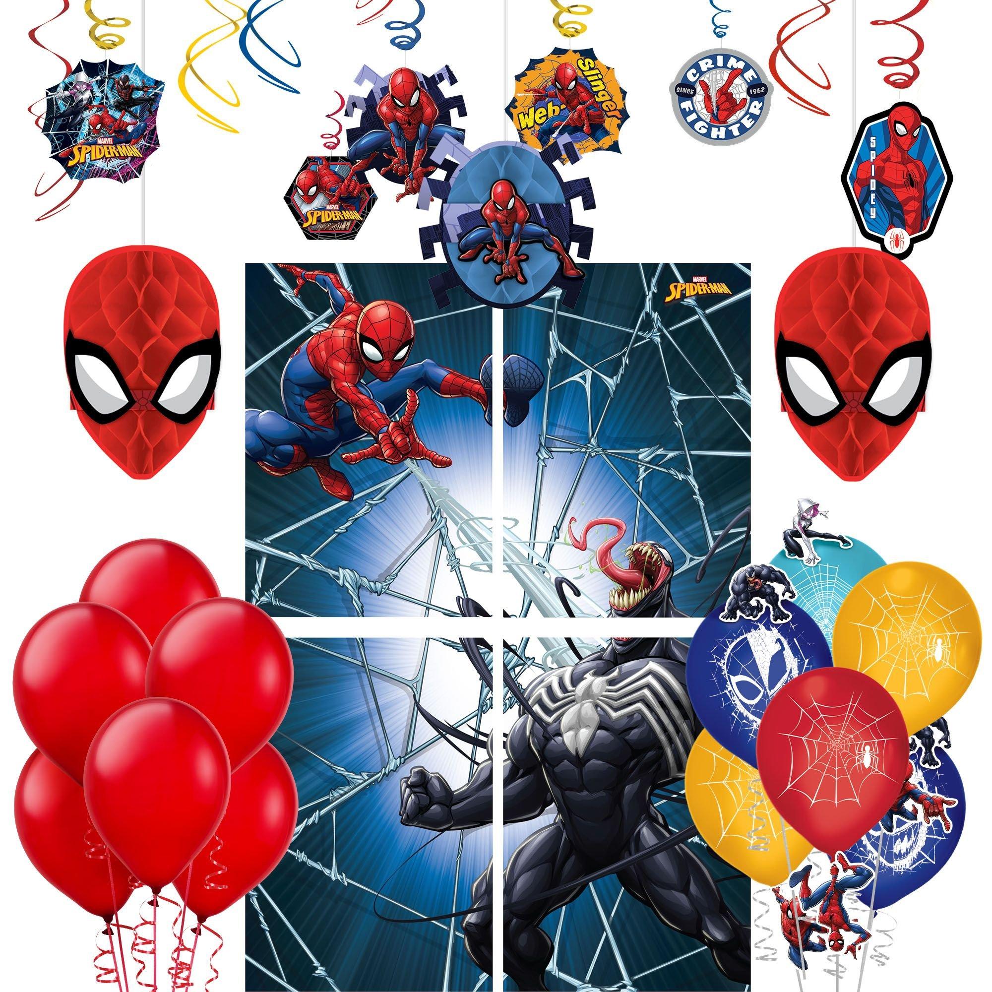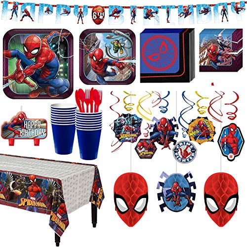 Party city spiderman decorations - 99 4.8 (45) not available. The colors have already been chosen for you, so think blue, red and black. Shop balloons, decorations, favours, halloween costumes and décor, and more! Spiderman birthday party decorations pack for 8 boys supplies balloons, loot bags, plates, cups, tablecover, napkins (57 piece bundle) 6 $3599 ($35.99/count) get it by tuesday, feb 22 free.