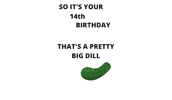 Source: www.amazon.com So It's Your 14Th Birthday That's A Pretty Big Dill: Funny 14Th Birthday Gift A Big Dill Pun Journal / Notebook / Diary (6 X 9 - 110 Blank Lined Pages): Publishing, Timothy: 9798601986168: Amazon.com: Books