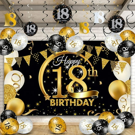 Source: www.walmart.ca Happy 18Th Birthday Party Decorations Kit, Black Gold Glittery Happy 18Th Birthday Backdrop Banner Balloon 18Th Birthday Hanging Swirls For Men Women 18Th Birthday Party Decorations Supplies | Walmart Canada